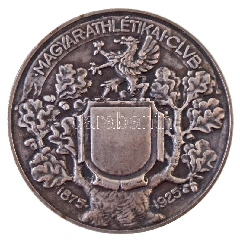 Berán Lajos (1882-1943) 1925. "Magyar Athletikai Club 1875-1925" ezüstözött Br emlékérem a klub fennállásának 50. évfordulójára, peremén treff szimbólumban "SMB" gyártói jelzéssel (77,86g/60mm) T:2 kopott ezüstözés a peremen / Hungary 1925. "Hungarian Athletic Club 1875-1925" silver plated Br commemorative medallion for 50th Anniversary of the Athletics Club, with "SMB" in clubs maker's mark on edge. Sign.: Lajos Berán (77,86g/60mm) C:XF worn silver plating on edge