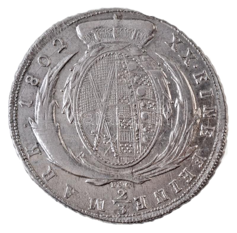Német Államok / Szászország-Albertine 1802IEC 2/3T Ag "III. Frigy... https://www.darabanth.com/en/33-Major-auction/33.1/Numismatics/Worldwide-silver-and-metal-coins~13844/Nemet-Allamok-Szaszorszag-Albertine-1802IEC-23T-Ag-III-Frigyes-Agost-Drezda-13-91g-T2-~II2125035