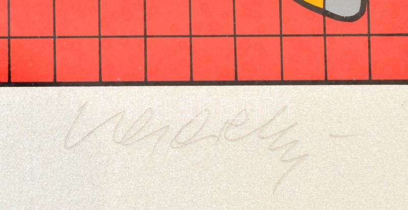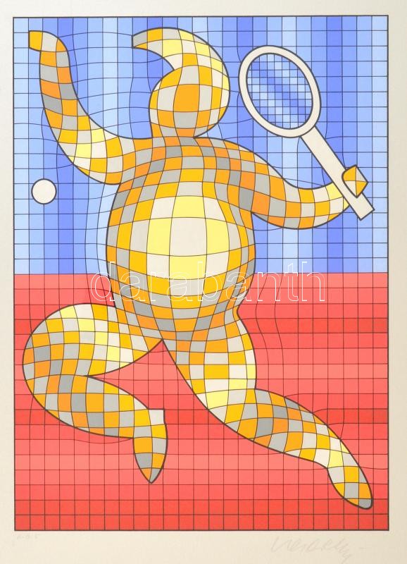 Vasarely, Victor (1908-1997): Teniszező. Szitanyomat, papír, jelzett, művészpéldány (E.A. 5), üvegezett keretben, 34×25 cm / Vasarely, Victor (1908-1997): Tennis player. Screenprint on paper, signed, artist's proof (E.A. 5), framed under glass, 34×25 cm