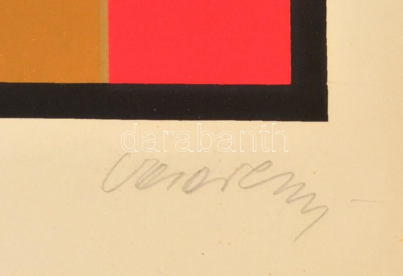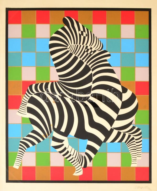 Vasarely, Victor (1908-1997): Zebrák. Szitanyomat, számozott (1/30), foltos, papír, jelzett, üvegezett keretben, 50×41,5 cm / Vasarely, Victor (1908-1997): Zebras. Screenprint on paper, numbered (1/30), spotty, signed, framed under glass, 50×41,5 cm