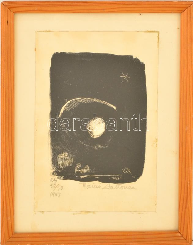 Wäinö Aaltonen (1894-1966): Égitestek 1963. Litográfia, papír, jelzett, számozott (50/50), üvegezett keretben, 19×13,5 / Wäinö Aaltonen (1894-1966): Planets 1963. Lithography on paper, numbered (50/50), signed, framed under glass, 19×13,5