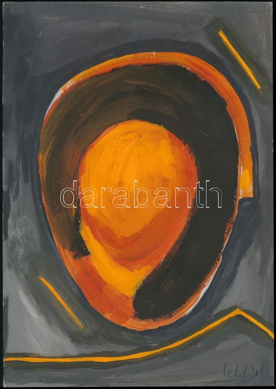 feLugossy László (1947-): Ovális jel. Papír, olaj, jelezve jobbra lent: FeLL '95, hátoldalán: feLugossy László, Ovális jel, 1995. 29,5x21 cm