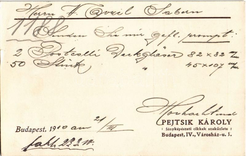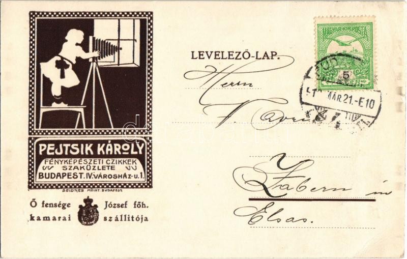 https://www.darabanth.com/en/33-Major-auction/33.1/Postcards/Advertisement~13997/1910-Pejtsik-Karoly-fenykepeszeti-cikkek-szakuzlete-Budapest-IV-Varoshaz-utca-1-Hungaria~II2142143