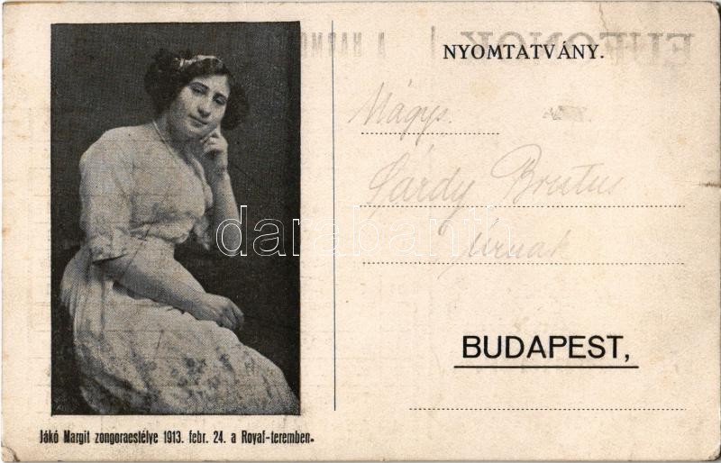 Jákó Margit zongoraestélye 1913. február 24-én a Royal teremben. Eufon... https://www.darabanth.com/en/33-Major-auction/33.1/Postcards/Advertisement~13997/Jako-Margit-zongoraestelye-1913-februar-24-en-a-Royal-teremben-Eufonok-a-vilag-legjobb-beszC3~II2133949