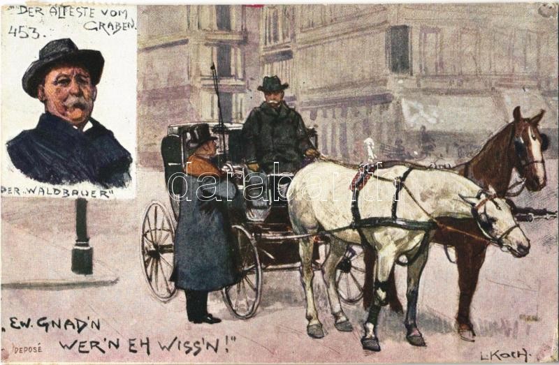 Wien, Vienna, Bécs; Der Alteste vom Graben 453. Der Waldbauer. Ew. Gnad'n wer'n eh wiss'n! / Viennese fiacre driver. B.K.W.I. 948-6.