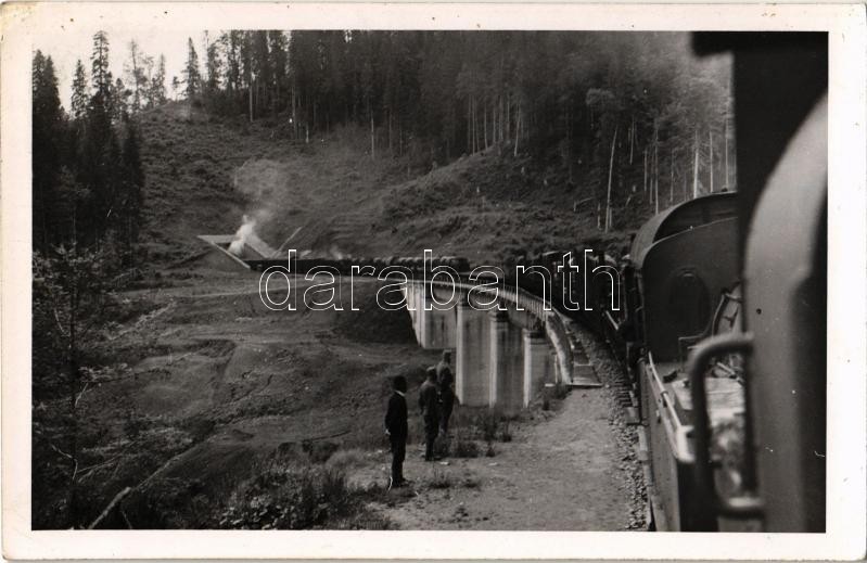 Description: 1944 Hajasd, Volosianka, Voloszjanka; Kárpáti vasútvonal és viadukt az Uzsoki hágónál, katonai iparvasút / Karpathen des Uzsoker Passes / Uzhok pass viaduct, military industrial railway, soldiers. photo