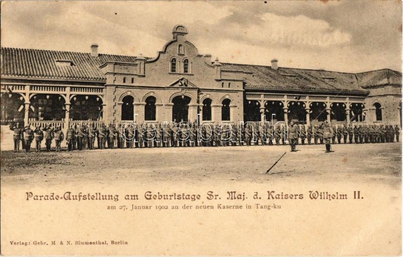 Tanggu, Tang-ku; Parade-Ausstellung am Geburtstage Sr. Maj. d. Kaisers... https://www.darabanth.com/en/33-Major-auction/33.1/Postcards/China~13942/Tanggu-Tang-ku-Parade-Ausstellung-am-Geburtstage-Sr-Maj-d-Kaisers-Wilhelm-II-am-27-Januar-1902~II2142068