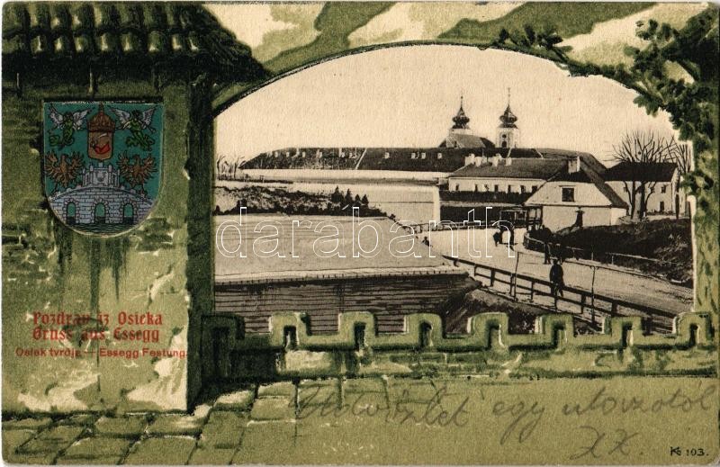 Eszék, Esseg, Osijek; erőd. Címeres szecessziós keret, Victor Fritsche...
