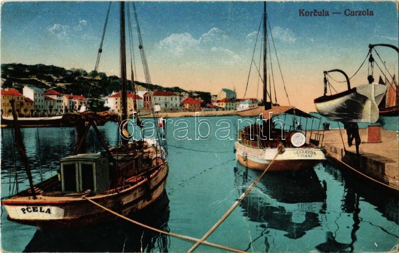 Korcula, Curzola; port, "Pcela" and "G. Karmena Viganj" ships