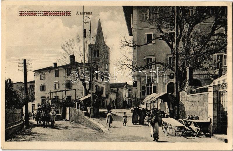 Lovran, Laurana; street, market, chariot / utcakép piaci árusokkal, lovaskocsi (EK)