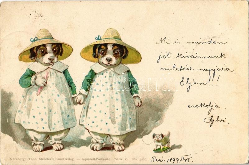 1899 Dog twins. Theo. Stroefer's Kunstverlag Aquarell-Postkarte Serie V. No. 5266. litho