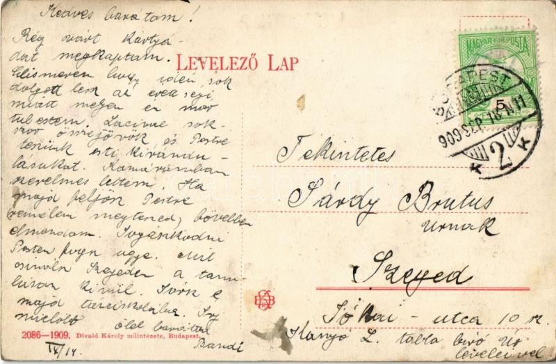 Description: Versenynap az irodában és a versenytéren. Humoros lap. Divald Károly 2086-1909. / Racing day in the office and at the race course. humour s: Farkas (?)