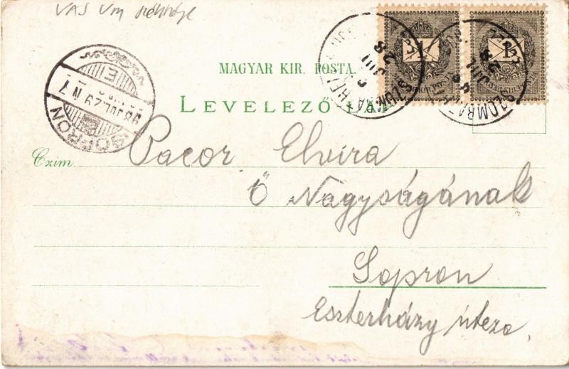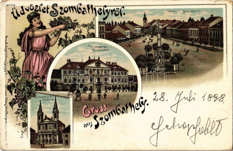 1898 Szombathely, Vármegyeház, Fő tér, Székesegyház. Regel & Krug Art Nouveau, floral, litho (fl)