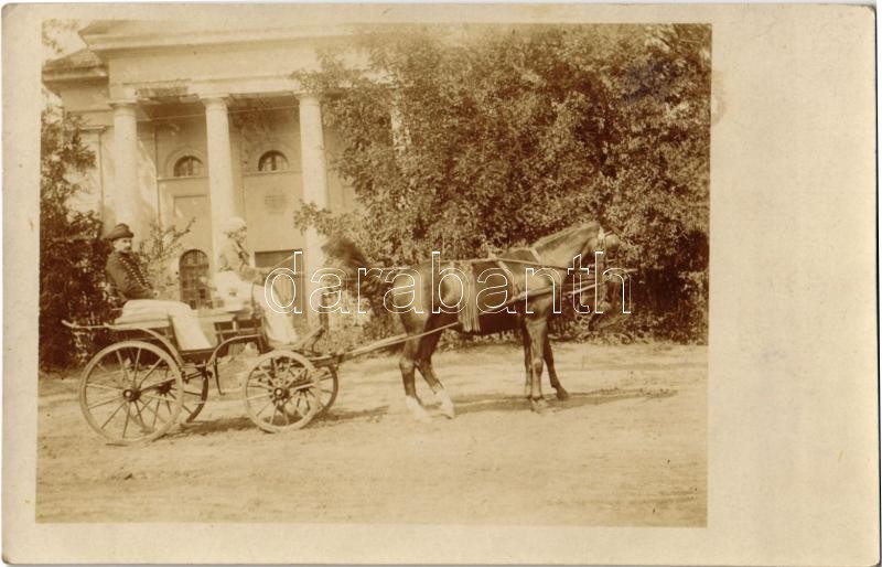 1925 Alap, Felső-Alap puszta, lovashintó a kastély előtt. photo