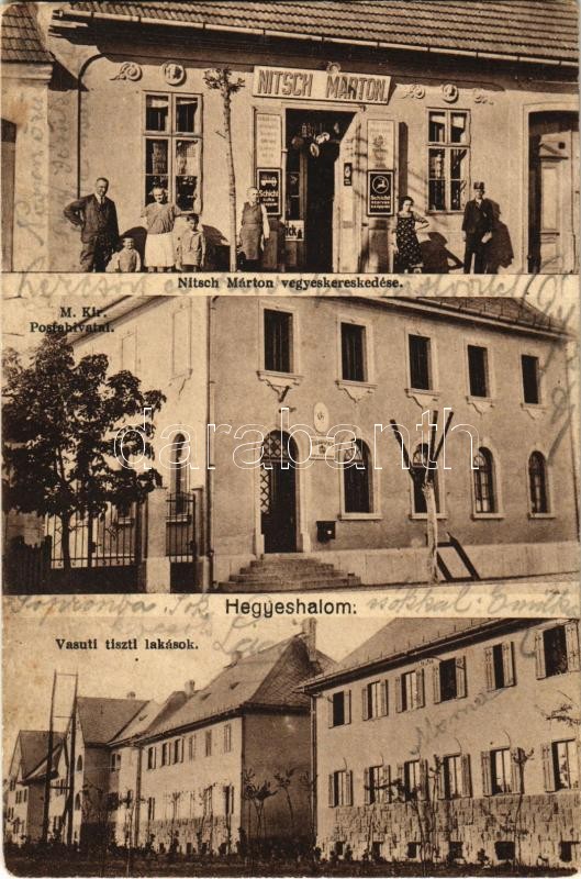 1930 Hegyeshalom, Nitsch Márton vegyeskereskedése, M. kir. postahivatal, vasúti tiszti lakások