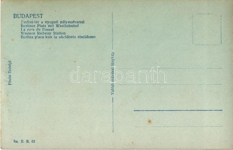 Budapest VI. Berlini tér (Nyugati tér), Nyugati pályaudvar, vasútállomás, villamosok, Magyar-Német Bank Rt., Moskovics Emil, Stühmer üzlete, hentes, teherautó, kerékpár. Photo Erdélyi