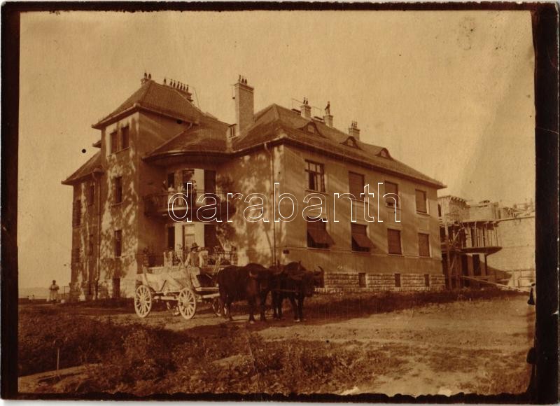 Szerencs, Cukorgyári tisztviselői lak, lovaskocsi, építkezés a háttérben. photo (12,5 x 9 cm) (fa)