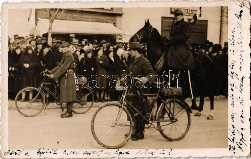 1941 Bevonuláskori eredeti fotófelvétel, kerékpáros katonák, háttérben... https://www.darabanth.com/en/33-Major-auction/33.1/Postcards/Irredenta~13986/1941-Bevonulaskori-eredeti-fotofelvetel-kerekparos-katonak-hatterben-Schlesinger-Kalman-~II2142299
