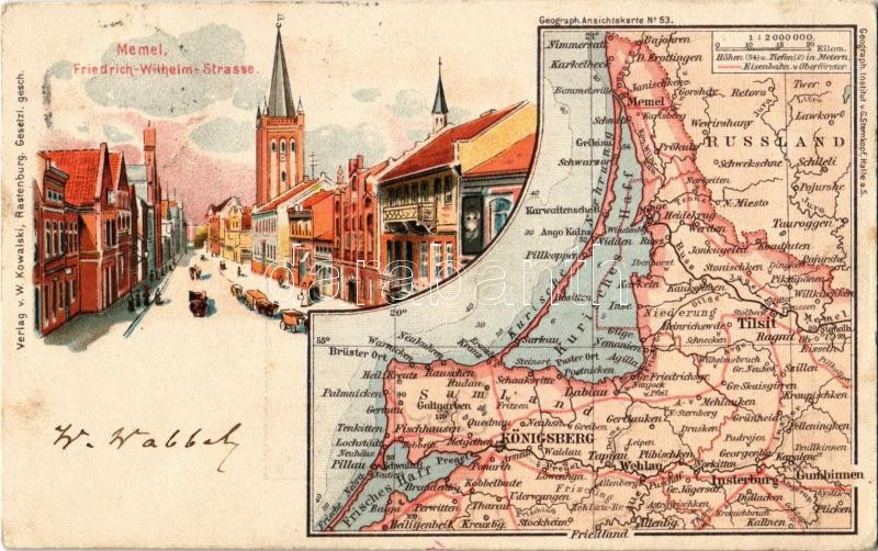 1909 Klaipeda, Memel; Friedrich Wilhelm Strasse / street, map. W. Kowa...