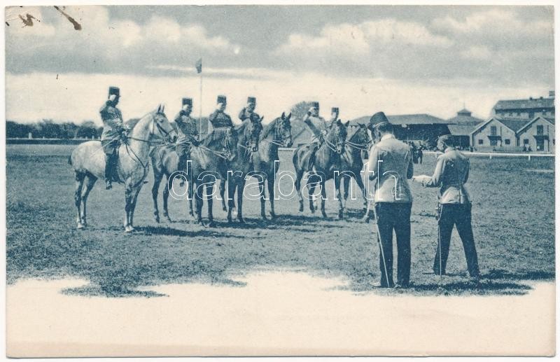 Osztrák-magyar katonák gyakorlat közben, tisztelgés. Hátoldalon sorsjegy a Szegénygyermek Poliklinika javára 927066 / K.u.K. (Austro-Hungarian) military, cavalrymen during training, saluting. Charity lottery ticket on tha backside (EK)