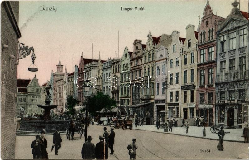 Gdansk, Danzig; Langer-Markt / street, Berlitz School, Drogerie Albert Neumann, shop of Gebr. Penner