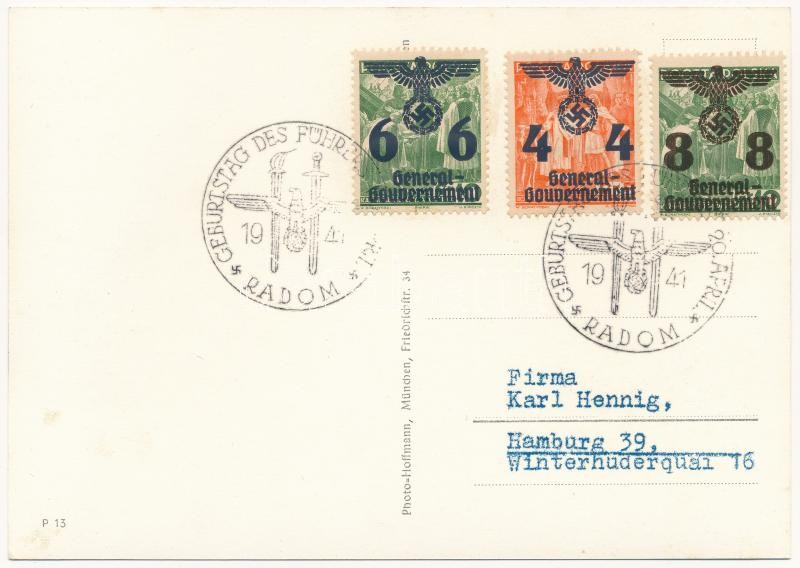 Description: Der Rückzug der Polen: Gekennzeichnet durch brennende Dörfer u. Städte. Photo-Hoffmann / The withdrawal of the Poles: Characterized by burning villages and cities. German NS (Nazi) propaganda + "1941 Radom Geburtstage des Führers 20. April" So. Stpl