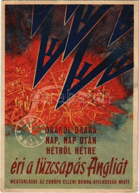 Óráról órára, nap, nap után, hétről, hétre éri a tűzcsapás Angliát. Me... https://www.darabanth.com/en/33-Major-auction/33.1/Postcards/Propaganda-politics~13996/Orarol-orara-nap-nap-utan-hetrol-hetre-eri-a-tuzcsapas-Angliat-Megtorlasul-az-Eur~II2135667
