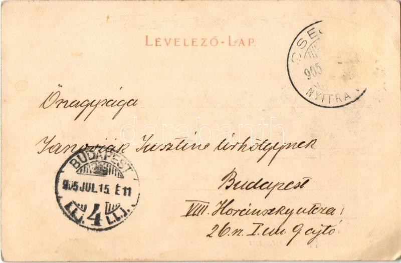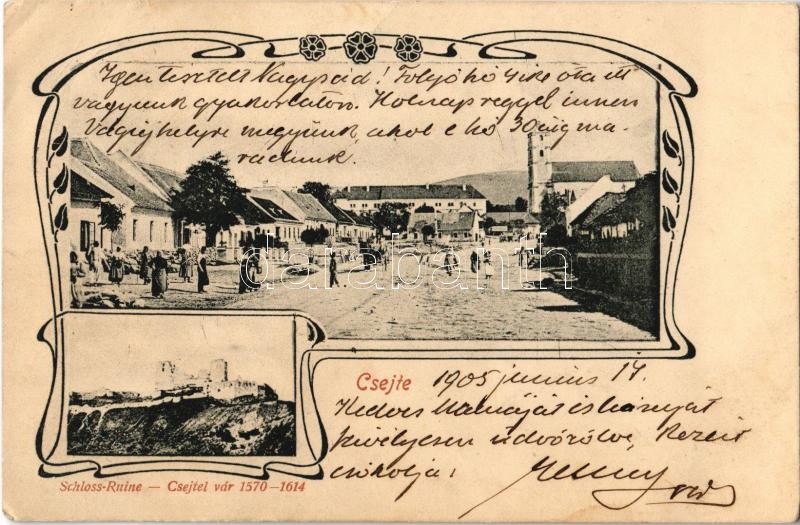 1905 Csejte, Csejthe, Cachtice; piac, vár 1570-1614, Fő utca / castle, main street, market. Art Nouveau (EB)
