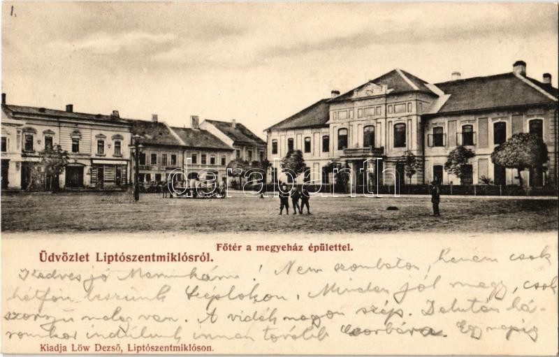 1906 Liptószentmiklós, Liptovsky Mikulás; Fő tér, megyeház épület. Löw...