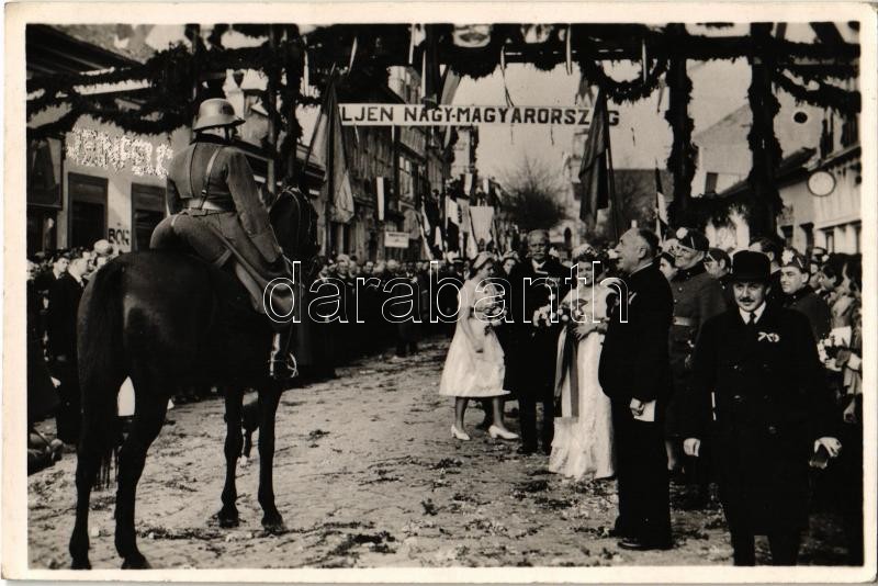 1938 Losonc, Lucenec; bevonulás, "Éljen Magyarország!" díszk...