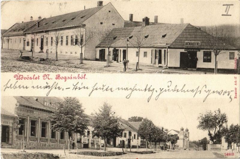 1902 Boksánbánya, Németbogsán, Deutsch-Bogsan, Bocsa Montana; utcaképek, zsinagóga, Martin Demetrovits szálloda, Kummer Ferenc üzlete, Rosner Adolf könyvkiadó üzlete és saját kiadása / streets, synagogue, hotel, shops