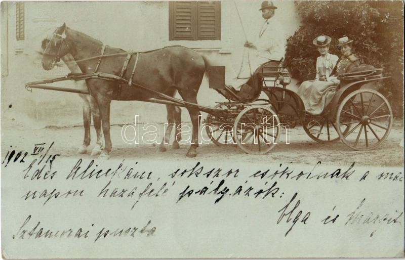 1902 Buziás, Sztamorai puszta, lovashintó hölgyekkel / horse chariot with ladies. photo (EK)