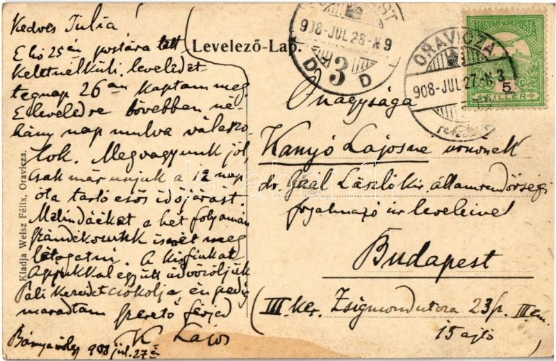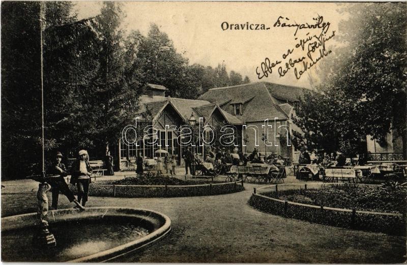 1908 Oravica, Oravita; Bányavölgyi fürdő és étterem, kert. Weisz Félix...