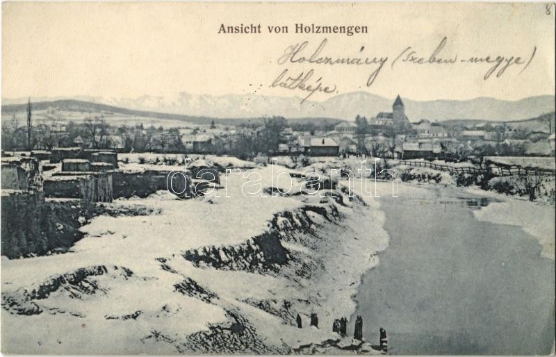 1911 Holcmány, Holzmengen, Hosman; téli látkép a Hortobágy folyóval / winter view with Hartibaciu river (EK)