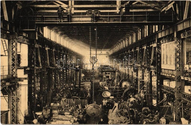 Resicabánya, Resita; Gépgyár, belső munkásokkal. Kiadja Neff Antal / engineering works, machine factory, interior with workers