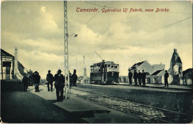 Temesvár, Timisoara; Gyárváros, Új híd, villamos. Gerő Manó kiadása / Fabrik, Neue Brücke / Fabrica, new bridge, tram (fl)