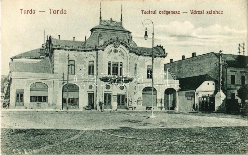 Torda, Turda; Városi színház, Lepter Rezső fűszerkereskedése, üzlet / ...