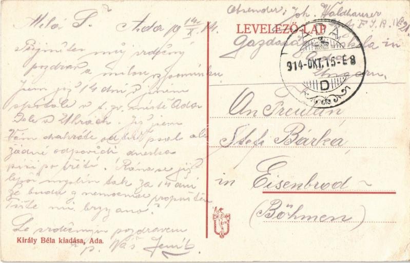 1914 Ada, Piactér, utca, zsinagóga. Király Béla kiadása / marketplace, street view, synagogue (EK)