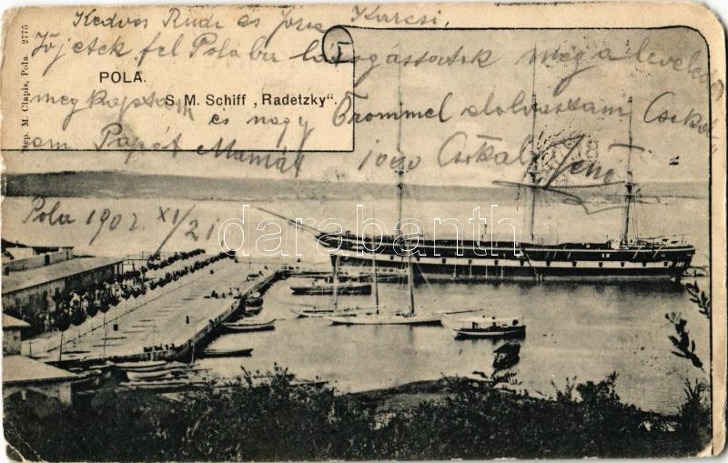 https://www.darabanth.com/en/33-Major-auction/33.1/Postcards/Warship~13981/1902-Pola-Pula-SMS-Radetzky-osztrak-magyar-Radetzky-osztalyu-csavaros-fregatt-a-kikotoben-~II2143173