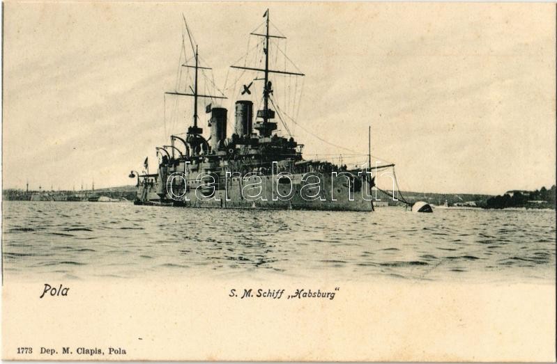 SMS Habsburg az Osztrák-Magyar Haditengerészet Habsburg-osztályú pre-dreadnought csatahajója / K.u.K. Kriegsmarine Schlachtschiff / Austro-Hungarian Navy battleship SMS Habsburg. M. Clapis 1773.