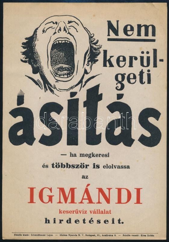 "Nem kerülgeti ásítás..." Igmándi keserűvíz kisplakát, 24×17...