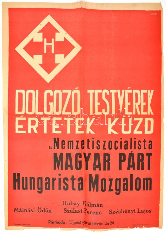 https://www.darabanth.com/en/33-Major-auction/33.1/Poster/Poster~13875/cca-1935-Dolgozo-Testverek-ertetek-kuzd-a-Magyar-Nemzetiszocialista-Part-Hungarista-mozgalom~II2129423