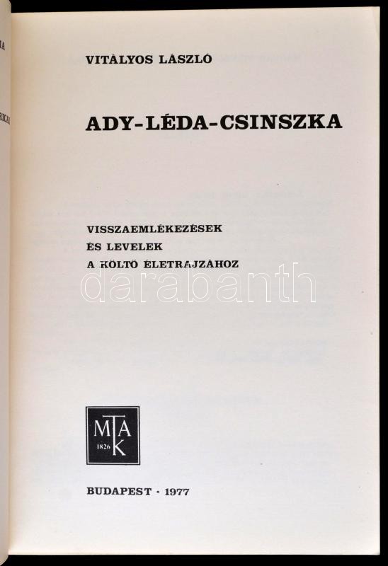https://www.darabanth.com/en/330-Online-auction/330.0/Books/Books-Other-rarities~1500019/Vitalyos-Laszlo-Ady-Leda-Csinszka-Visszaemlekezesek-es-levelek-a-kolto-eletrajzahoz-~II1844843