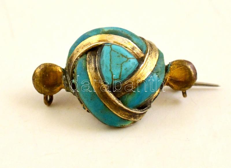Aranyozott ezüst(Ag) bross howlittal, jelzés nélkül, 2,5×1,5 cm, brutt...