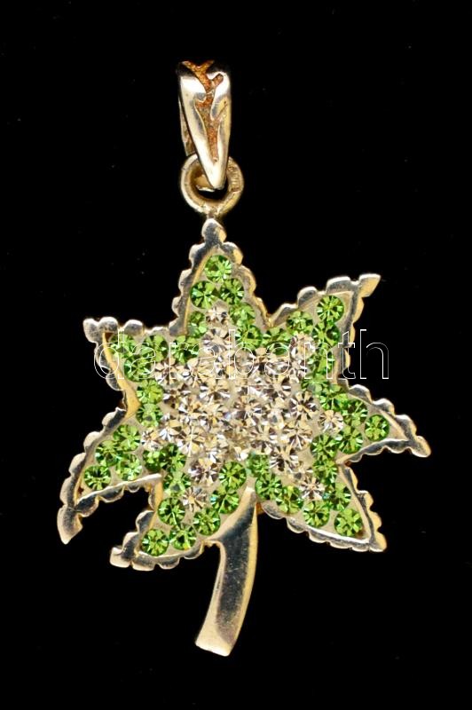 Ezüst(Ag) apró strasszokkal kirakott levél függő, jelzett, 3,5×2,3 cm, bruttó: 4,6 g