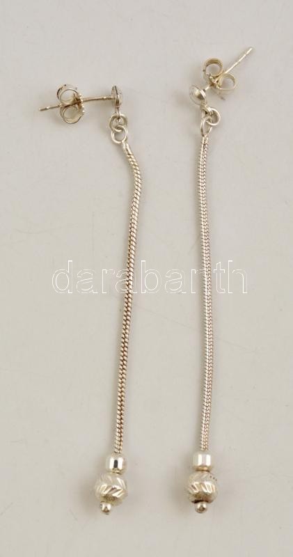 Ezüst(Ag) kígyóláncos fülbevalópár, jelzett, h: 7,4 cm, nettó: 3,9 g