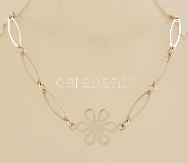 Ezüst(Ag) virágdíszes karkötő, jelzett, h: 20 cm, nettó: 3,1 g