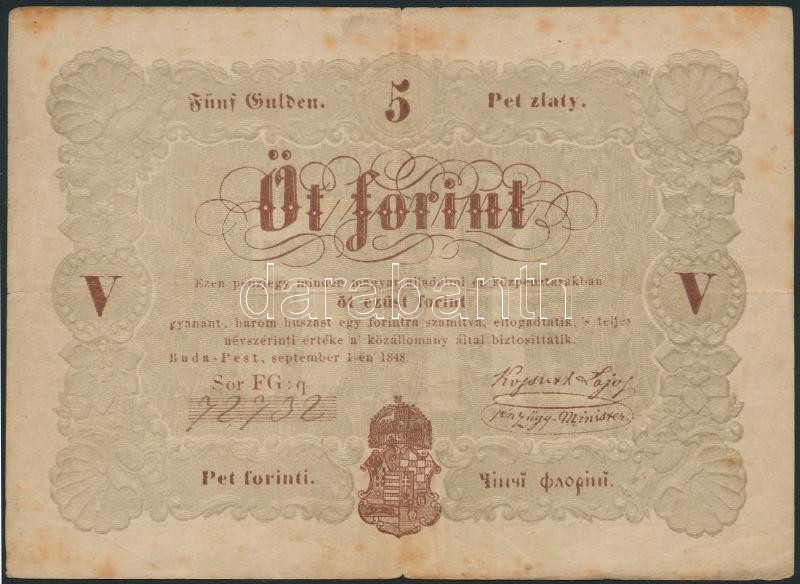 https://www.darabanth.com/en/330-Online-auction/330.0/Numismatics/Hungarian-Banknotes~1000006/1848-5Ft-Kossuth-banko-barna-nyomat-TIII-Adamo-G109A~II1839646