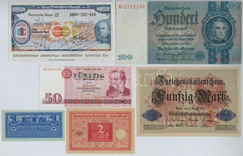 Description: 1914-1992. 6db-os vegyes német bankjegy tétel, közte egy utazási csekk is T:I--III