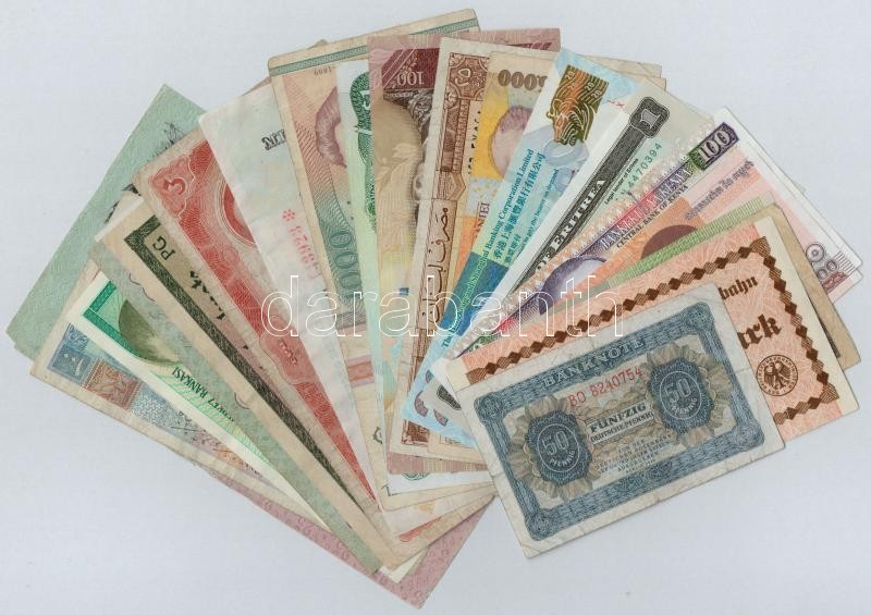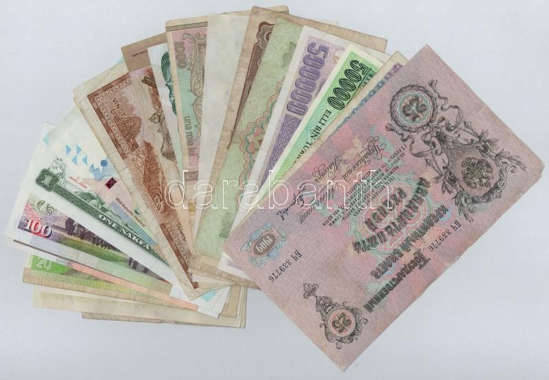 22db-os vegyes bankjegy tétel, közte Törökország, Bahamák, Hongkong, Kambodzsa, Venezuela, Eritrea, Románia és Orosz Birodalom T:vegyes 22pcs of various banknotes, including Turkey, Bahamas, Hong Kong, Cambodia, Venezuela, Eritrea, Romania and Russian Empire C: mixed
